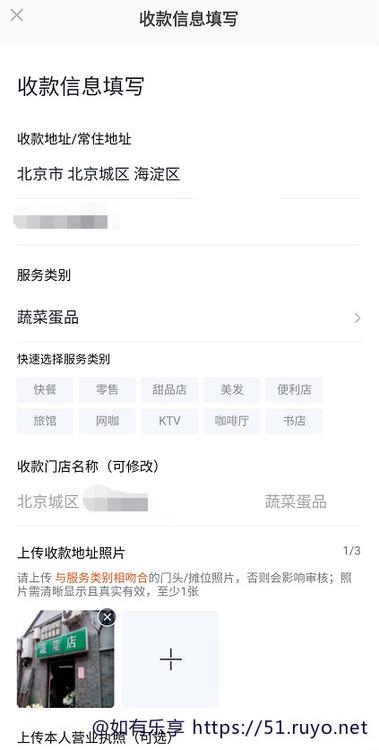 3)填写门店地址,以及类别,门脸照片,营业执照可以不用传!