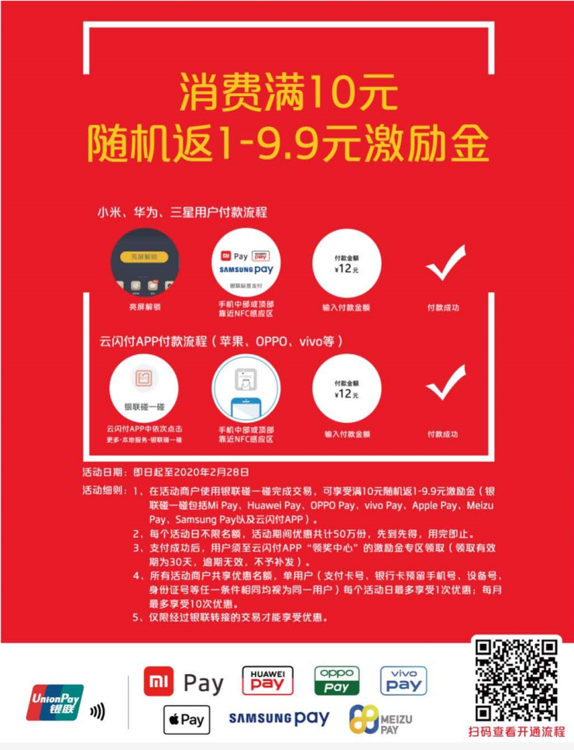 1)闪付随机减活动!