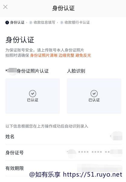 2)填写身份信息!需要实名认证+人脸认证!